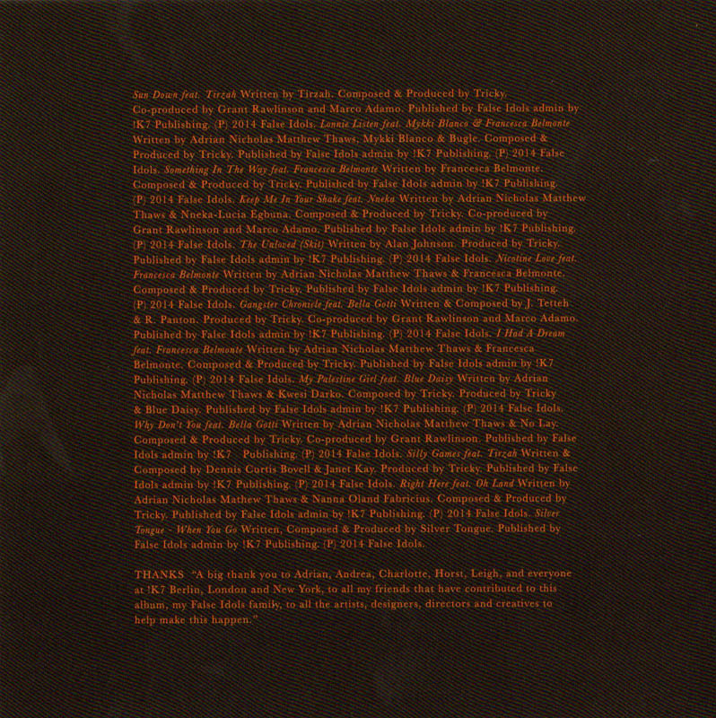 The CD comes in a digipak which is sort of a book with photos and comments by Tricky:
